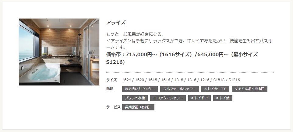 アライズはLIXILがラインナップしている戸建て用システムバスの中で安価な商品となります。