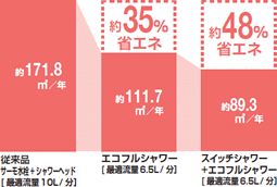 従来のシャワーと比べて約35%(当社比)の節湯(せつゆ)効果を実現しました~!