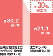 そしてこちらは『エコハンドル』。無意識での湯の使用を抑制することで、