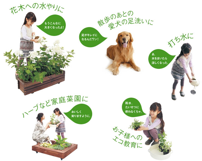 雨樋から雨水を自動的にタンクに貯めてくれるため、