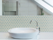 丸型の可愛いタイルはカラー目地材と組み合わせもオススメ。