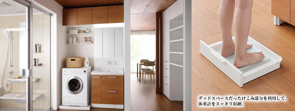 洗面台の下には体重計をスッキリ収納できるスペースが出来ました。