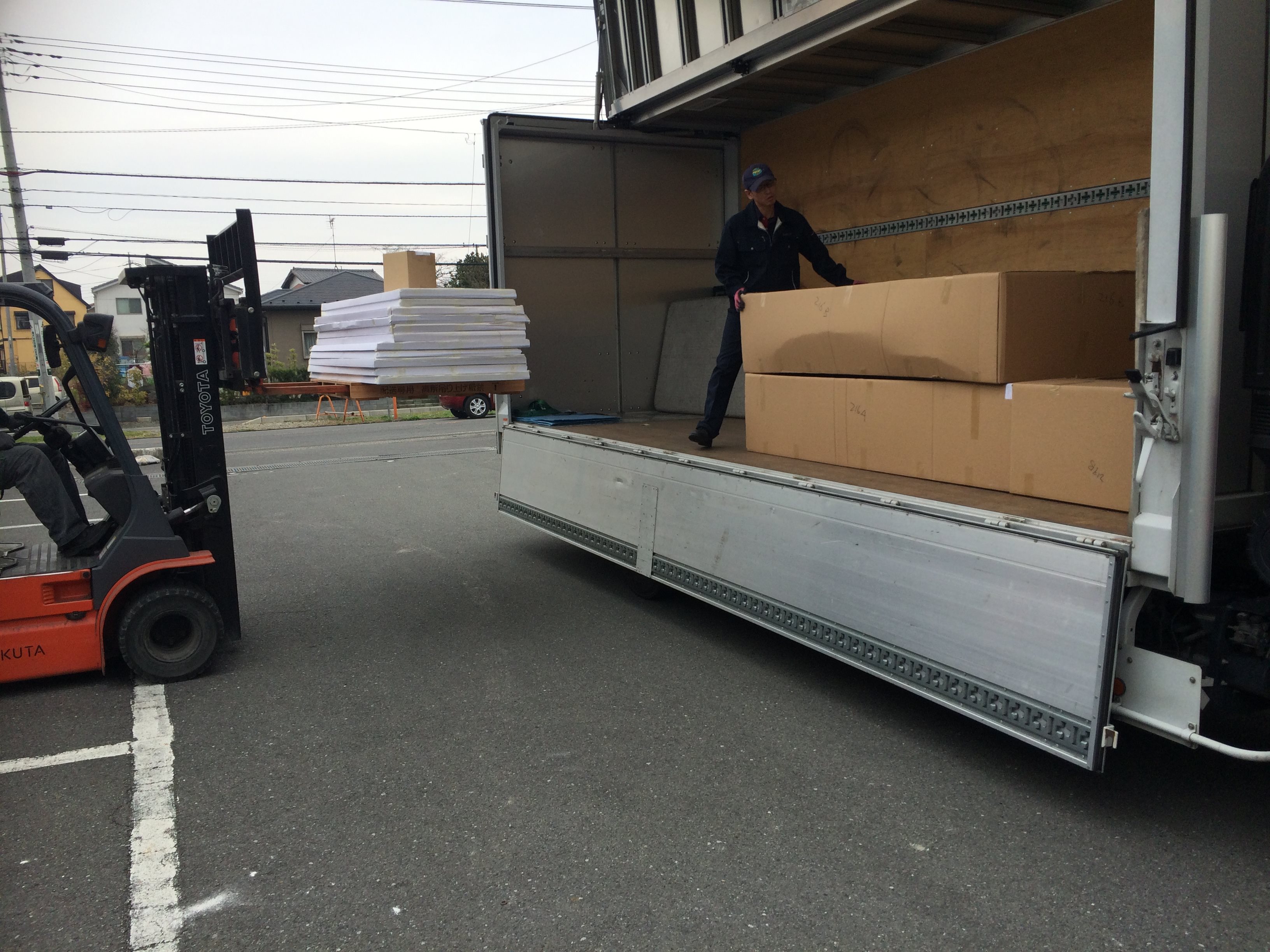 早朝からも集荷に来る運送会社を迎え、送りしていました。