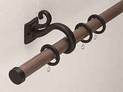 人気のナチュラルモダンテイストとアンティーク感をミックスしたカーテンレールで、 ハンマートーンを再現したパーツや長年使い込んだような木質感がヴィンテージ感を演出します。