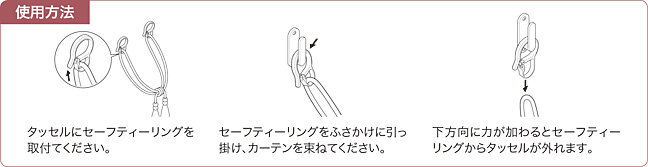 現在使用中のタッセルにも取付OK。 荷重がかかるとタッセルが外れます。