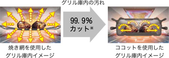 99%削減でき、調理した後のグリル庫内の清掃が飛躍的に向上!