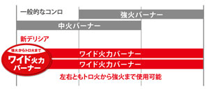 Wワイド火力バーナーを引き続き採用。