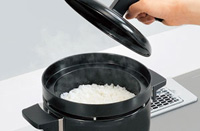 スイッチを押すだけで、自動で火力調節して炊き上げ、自動で消火。