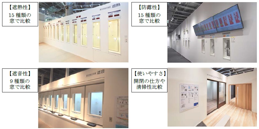 具体的には、 “窓”の断熱性・遮熱性・防露性・通風性・遮音性・防犯性・清掃性・使いやすさなどを、 実験装置と実物展示から、 『感じる』・『みる』・『学ぶ』ことができます。