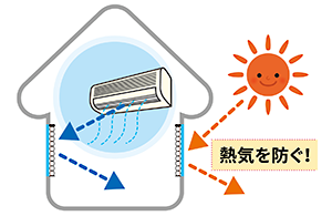窓の暑さや寒さの流入を防ぎながら、冷暖房の涼しさ・暖かさを保ちます。