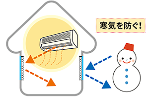 冬は外からの寒さの侵入を防ぎながら、お部屋の暖かさをキープして「保温」。
