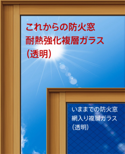 防火設備の“防火窓”では、網入りガラスの使用が一般的です。