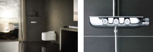 グローエの「センシア アリーナ」(左)と「スマートコントロール」