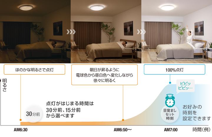 朝の目覚めをサポートする「目覚めのあかり」と、