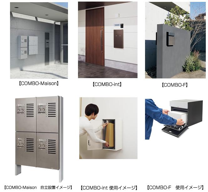 戸建住宅用としてはポストと宅配ボックスを一体化させた2種類、住宅壁埋め込み専用の「COMBO-int(イント)」と、門柱などに設置できる「COMBO-F(エフ)」の各品種が追加となります。