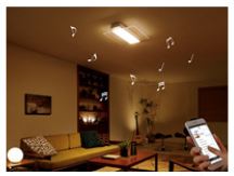 昨年3月に発売されました「Link Style LED」シリーズ。薄型のデザインにスマートフォンで複数の照明を一括制御できる機能に、さらに新たな機能としてBluetoothスピーカーを内蔵し、ワイヤレスで天井からの音を楽しむことができます。