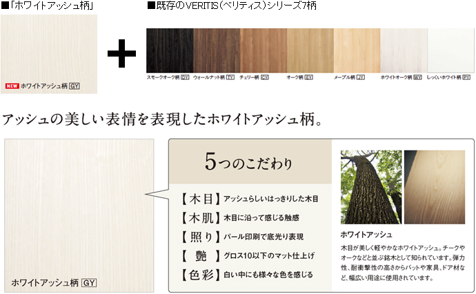 清潔感のある明るい色と年齢を重ねた木目が美しい「ホワイトアッシュ柄」が追加になります!
