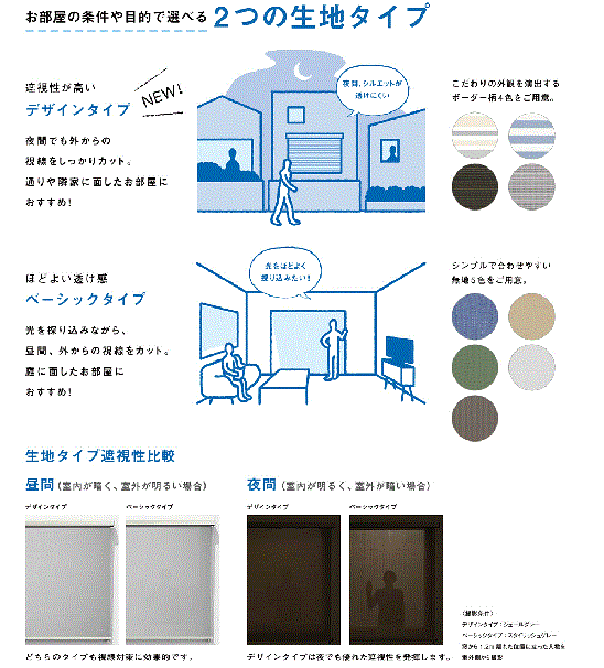 スタイルシェードの生地は、2種類から選べます。