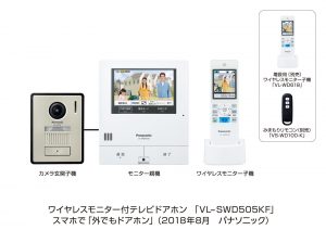 パナソニック株式会社より、カメラ付きモニター親機でビデオ通話ができる、ワイヤレスモニター付きテレビドアホンVL-SWD505シリーズが、2018年10月18日より発売されます。