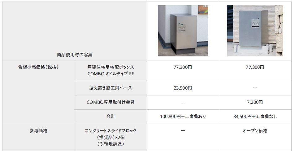 「戸建住宅用宅配ボックスCOMBO(コンボ)ミドルタイプ」専用の取り付け金具が発売されました。