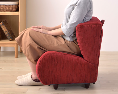 傾斜のある座面と身体をしっかりと支える背もたれの独特な形状。