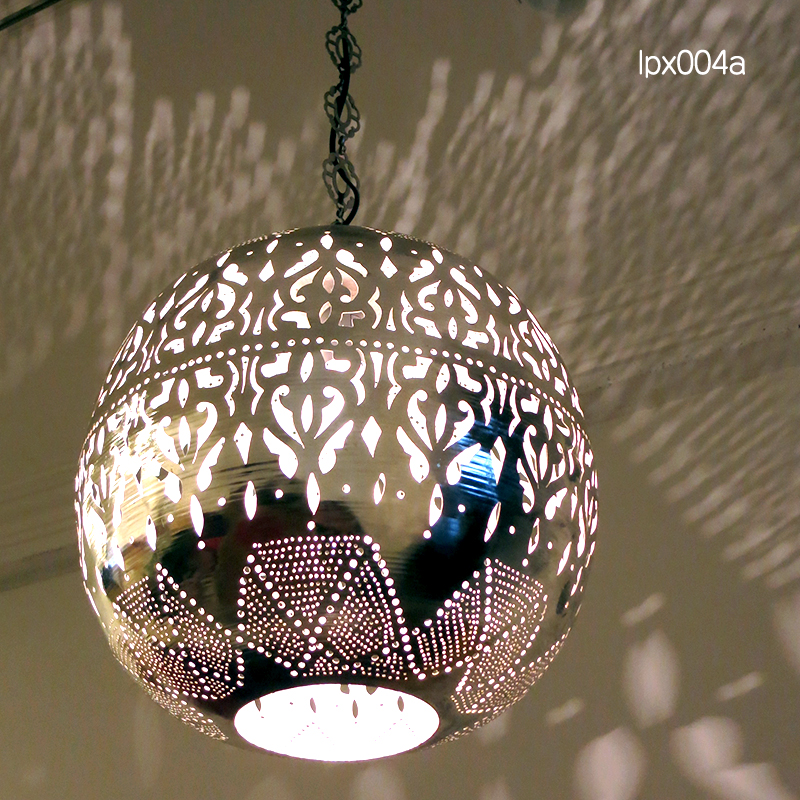 エジプト・カイロで、中世からの手工業技術をいかして、鉄製の球体に細かな細工を施したランプです。