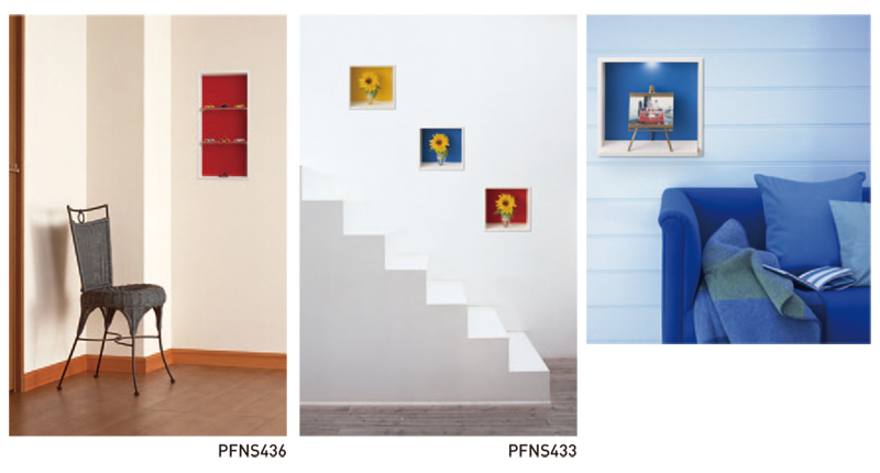 こちらの商品は特殊な工具を必要とせず、壁内部の柱、間柱、縦枠、スタッド、筋交い等以外の場所へ壁ボード材のカットのみで取付が可能です。また台座4色・背面パネル8色からお好きなカラーをお選びいただけます。
