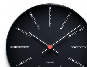 晩年のヤコブセンの最高傑作とも言われる「デンマーク国立銀行」を設計した際、トータルデザインに基づき家具や水栓器具等とともに手掛けたクロックのバンカーズ 。