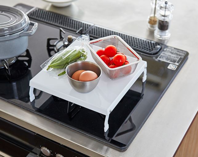 使用していないガスコンロの上が収納&作業スペースに早変わり!