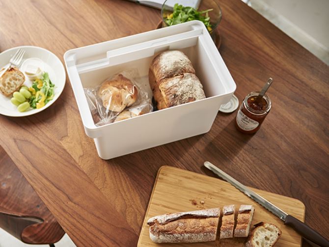 こちらは蓋がカッティングボードとして使えるスタイリッシュなブレッドケース。