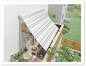 | 窓の外側でしっかり日差しをカットできます。 | 窓を開ければ、バルコニーの横を吹き抜ける風を採り込めます。 |