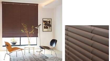シャープな印象のアルミのブラインドですが、ヘッドボックス(商品上部)とボトムレール(商品下部)に天然木を仕様する事により、高級感ある仕上がりに。
