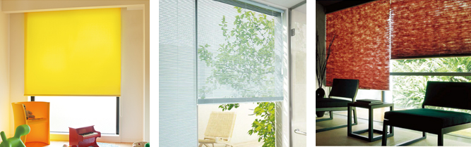 インテリアファブリックで、「ロールスクリーン」「ブラインド」「プリーツスクリーン」の