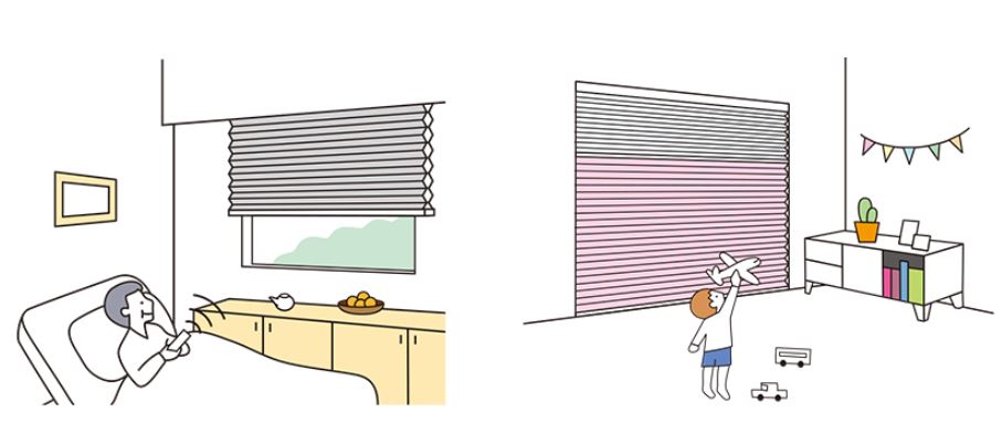 大きな窓や複数ある窓でも、移動せずにその場で操作ができるので、ご高齢の方にも優しく