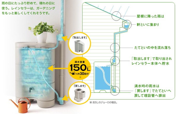 こちら「雨水貯留タンク」は、降った雨を雨樋から取得して 貯水することができるエコグッズです。