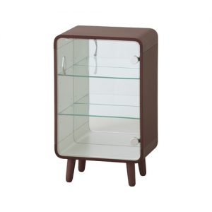 サイズは、幅36×奥行26.5×高さ60cmと少し小さめのサイズかもしれませんが、背面の鏡により収納品の後ろ側も見ることができ、また全面はガラスの扉なのでホコリ等も入りにくくなっています。