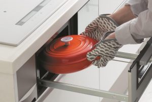 グリルの上部ヒーターに平面ヒーターを採用することで、庫内の高さは101mmを実現。これにより高さのある食材や市販の鍋をグリルに入れて調理ができ、また庫内全体の拭き掃除もグリル庫内の天井面がフラットな為、お手入れもし易くなっています。