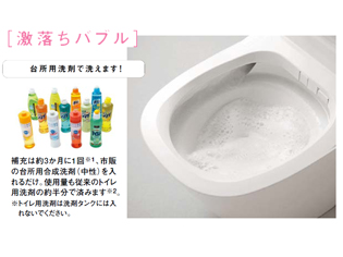 まず、「激落ちバブル」は、パナソニックのトイレ、新型アラウーノとアラウーノSⅡの標準仕様になっています。