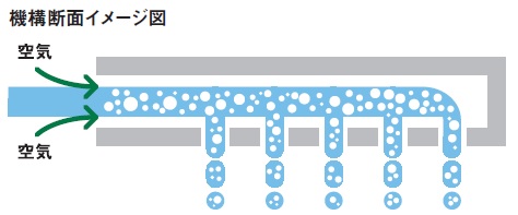 水に空気を含ませることで、水粒の一粒一粒を大きくしました。少ない水でしっかり洗え、節水効果を高めます。