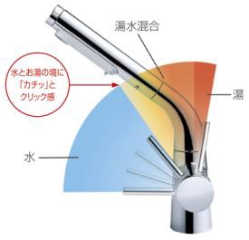 水とお湯の境にクリック感を設けることで、きちんとお湯と水の使い分けが出来ます。