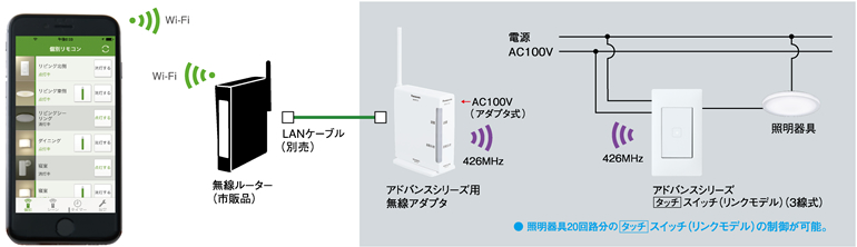 - 操作機器には「照明スイッチ」アプリのインストール(無料)が必要です。(2015年2月配信予定)