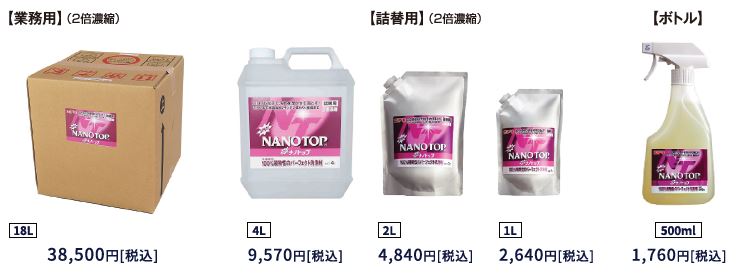 ナノトップは約20ml(※約39円)と大変経済的です。※18L購入の場合