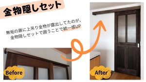 露出してしまう上吊り金物を、隠すことのできる無目枠セットです。