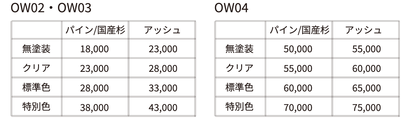 ▼価格表※税別定価