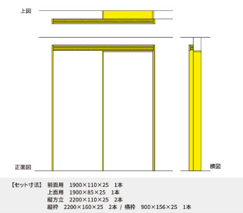 -縦/横枠なし 金物の前/側/上面のみ