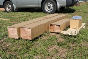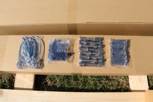 まずは材料と金物を確認します。(写真はW1800×D1500、無塗装、オプション無し仕様です)