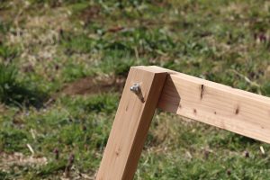 始めに天板受けⒶ・脚Ⓑ・ベンチ受けⒺを仮止めしていきます。