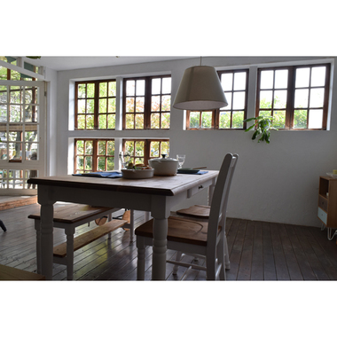 イメージ写真のようにベンチにしても、ダイニングチェアで揃えるなどお好みにあわせて。