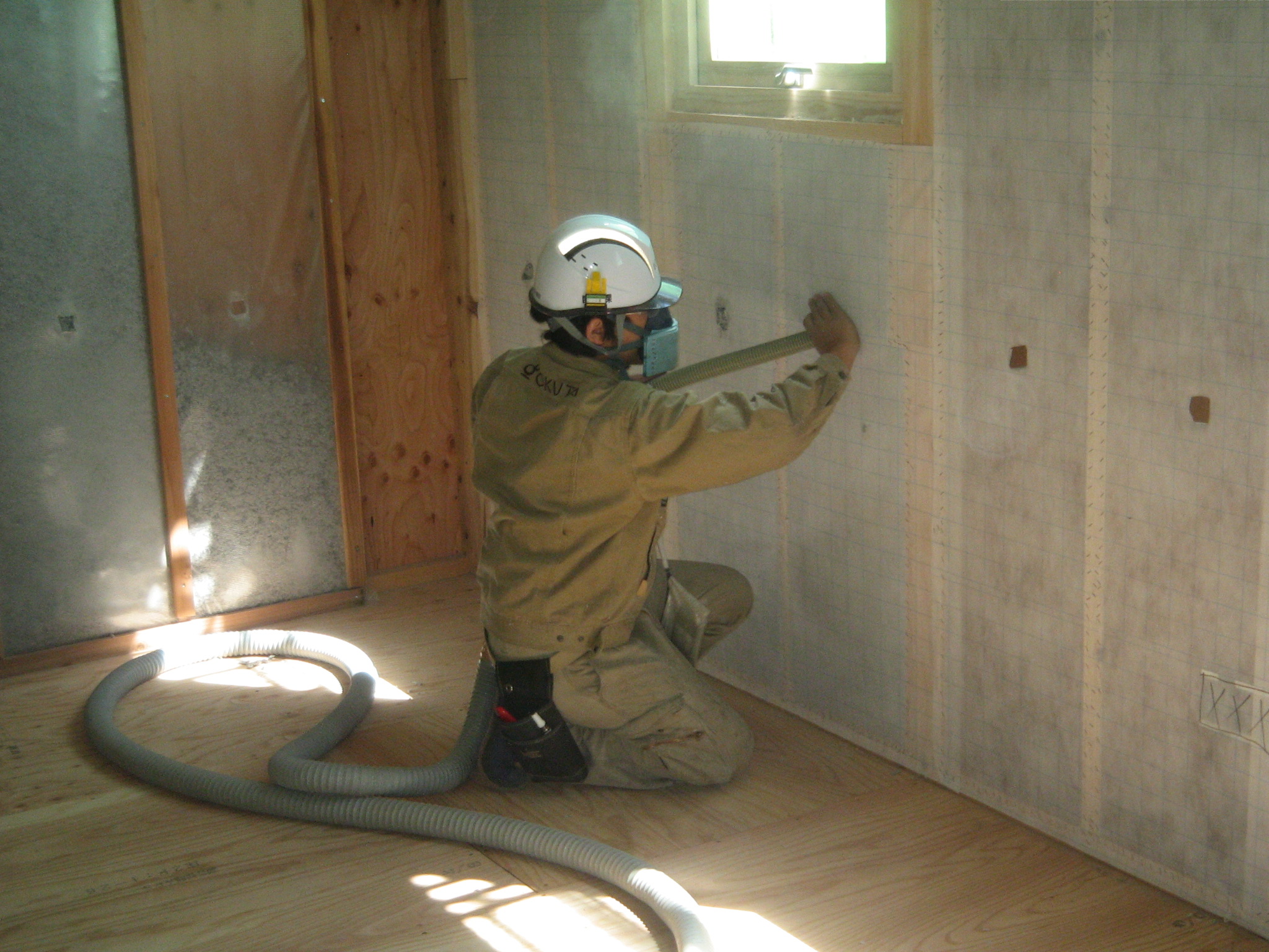・アクリル板によって吹き込みの様子が背面から見られる『施工見学』