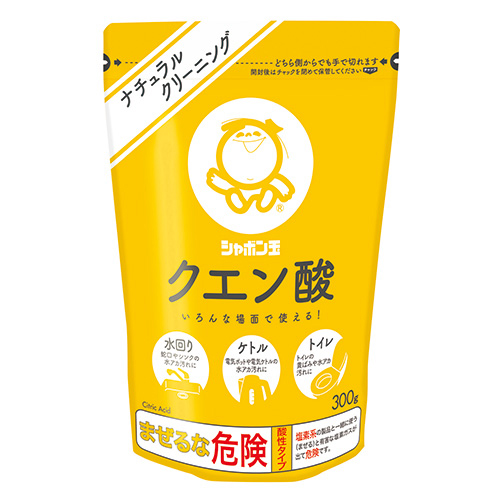 クエン酸は酸性のためアルカリ性の汚れ(水あか、トイレの黄ばみなど)に強く、酸性の汚れに強い重曹(弱アルカリ性)や酸素系漂白剤(弱アルカリ性)と使い分けることで、より快適にお掃除していただけます。